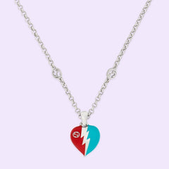 GG Interlocking G Heart Lightning Charm Necklace